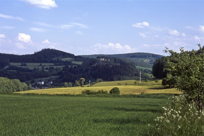 Pod půvabnou zříceninou středověkého hradu se choulí stejnojmenná vesnička. Ta vznikla nejspíše zároveň s hradem. Nenápadná stavba filiálního kostela Narození Panny Marie je tedy i jednou z nejstarších sakrálních staveb na severozápadní Moravě. Dnešní barokní podobu získal přestavbou v 18. století. Kostel má pozdněrománské jádro někdy z druhé poloviny 13. století. Jedná se o orientovanou jednolodní stavbu s předsunutou kvadratickou věží. Fasády jsou hladké, věž je členěna lesénami. Loď má plochý strop, presbytář má valenou klenbu s konchou. Při přestavbě byla zřejmě zachována románská dispozice podélného kostela s půlkruhovou apsidou. K areálu kostela přiléhá ohradní zeď z lomového kamene se vstupní bránou z 18. století, klasicistní kamenný kříž u kostela je z r. 1796. Kromě této památky najdeme nedaleko pomník padlých z 1. světové války a neméně památná je vedlejší hospoda U Kouřilů, která přivítá každého znaveného poutníka.