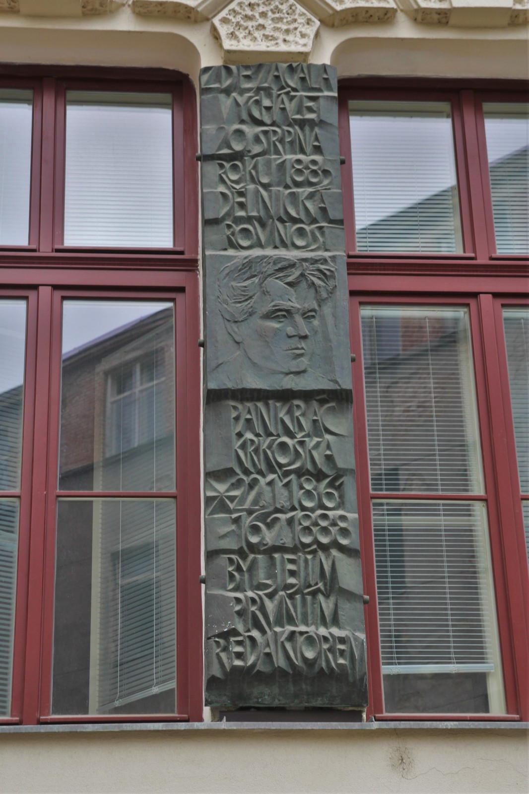 Nachází se na fasádě objektu mezi okny na rohu ulic Bratislavské a Příční. Na bronzové desce je umístěn text: Zde začala vycházet 20. srpna roku 1885 dělnická Rovnost. Pankrác Krkoška 22.1.1861 - 16.2.1888 byl jejím prvním redaktorem. Uprostřed je portrét Pankráce Krkošky. Pankrác Krkoška se stal v roce 1885 spoluzakladatelem a posléze i hlavním redaktorem brněnské Rovnosti. Zasloužil se o její žurnalistickou úroveň. Vynikal značným politickým vzděláním a věnoval zvláštní pozornost teoretickým problémům tehdejšího socialistického hnutí. Vyvíjel širokou osvětovou činnost mezi místním dělnictvem.