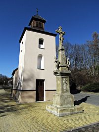 Sakrální objekt byl vystavěn roku 1844. V interiéru se nachází soška Madony přenesená sem z bočního oltáře kostela sv.Petra a Pavla v Brodku, která je o 15 let starší než samotná kaple. Před ní se vypíná veliký kamenný kříž. Jeho štíhlý podstavec člení zdobné reliéfy a úpatí krucifixu s ukřižovaným Ježíšem je přizdobeno figurkou svatého Jana a Máří Magdalény. Kříž vznikl ve stejném roce jako kaple.
