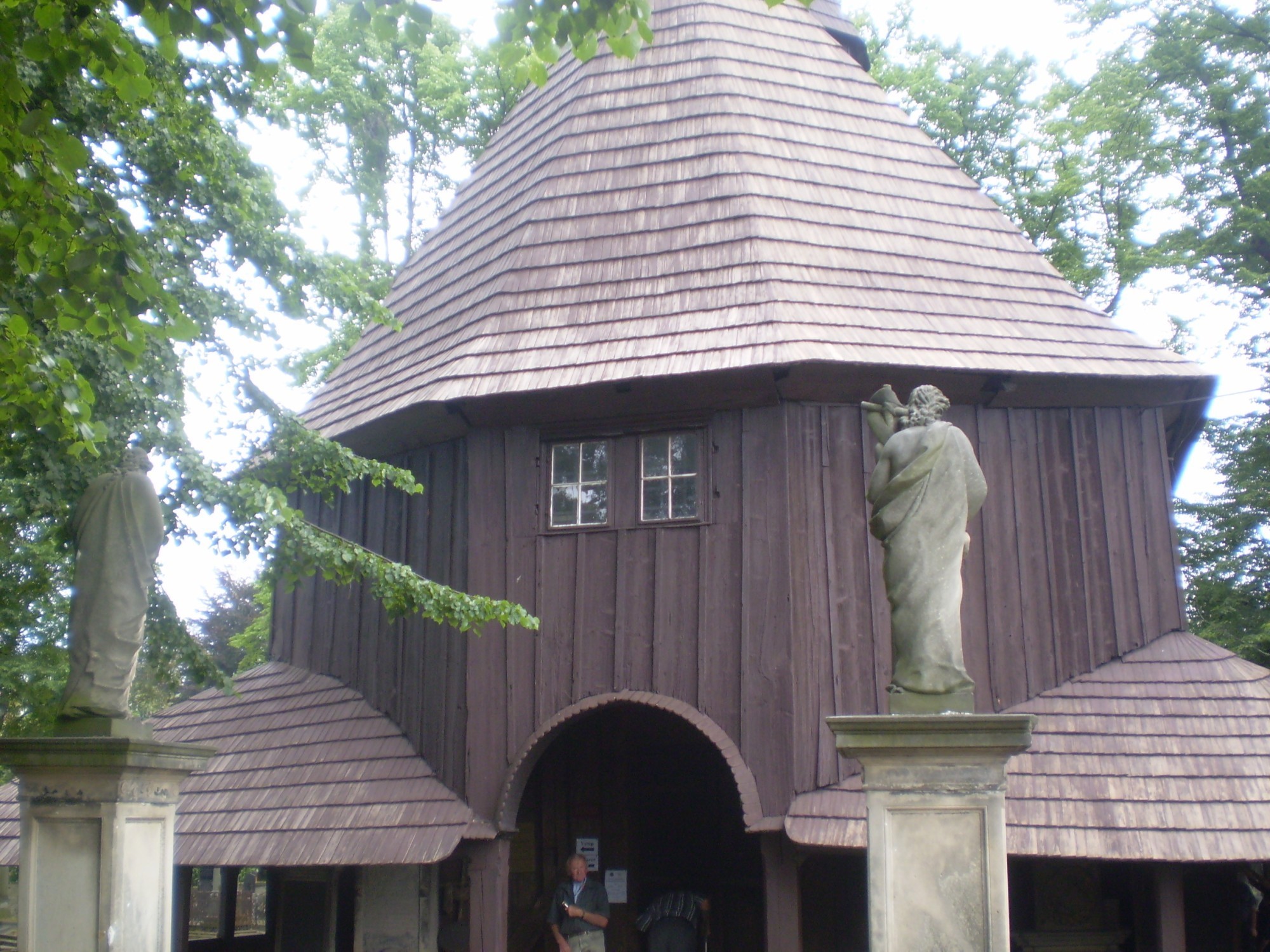 Dřevěný hřbitovní kostel byl vystavěn ve 12. století a během husitského obléhání 1421 byl vypálen. Později, tedy v roce 1450 znovuzrozen.Je to unikátní stavba, neboť se jedná o nejstarší dřevěný kostel v ČR. V kostele jsou krásné malované stropy. U venkovní stěny jsou dřevěné kronikářské desky.