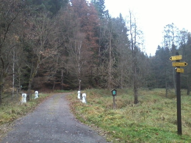 Rozcestí u bývalé osady Zadní Doubice,na soutoku Bílého a Brtnického potoka a říčky Křinice.Zpevněné cesty vedou do osady Kopec,Kyjova a hraničnímu přechodu Zadní Doubice.Odbočka na německou tur.trasu(žlutá) údolím Bílého potoka(po německé straně).