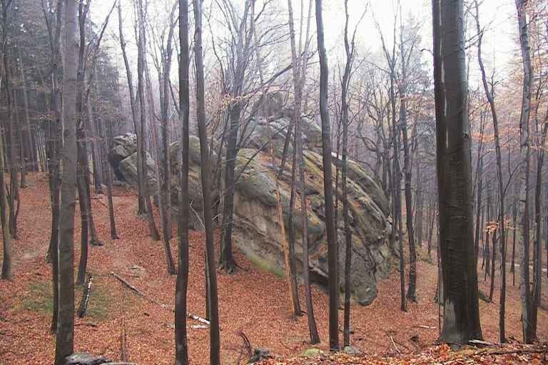 Budačina je starý, ale velice působivý skalní útvar s malou pseukrasovou jeskyní, který byl vytvořený kvarterní denudací. V roce 1966 byl vyhlášen chráněným přírodním útvarem. Pískovcové skály se vypínají v severní části Kudlovické doliny, která vede mezi obcemi Kostelany a Kudlovice, jihozápadně od Otrokovic. Největší skaliska jsou nazývána Malou a Velkou skálou. Na Velké skále je umístěna pamětní deska s reliéfem Antonína Rozsypala, umučeného roku 1941 v Mauthausenu, jejímž autorem je sochař S. Harna. Horolezecká činnost je zde zakázána.