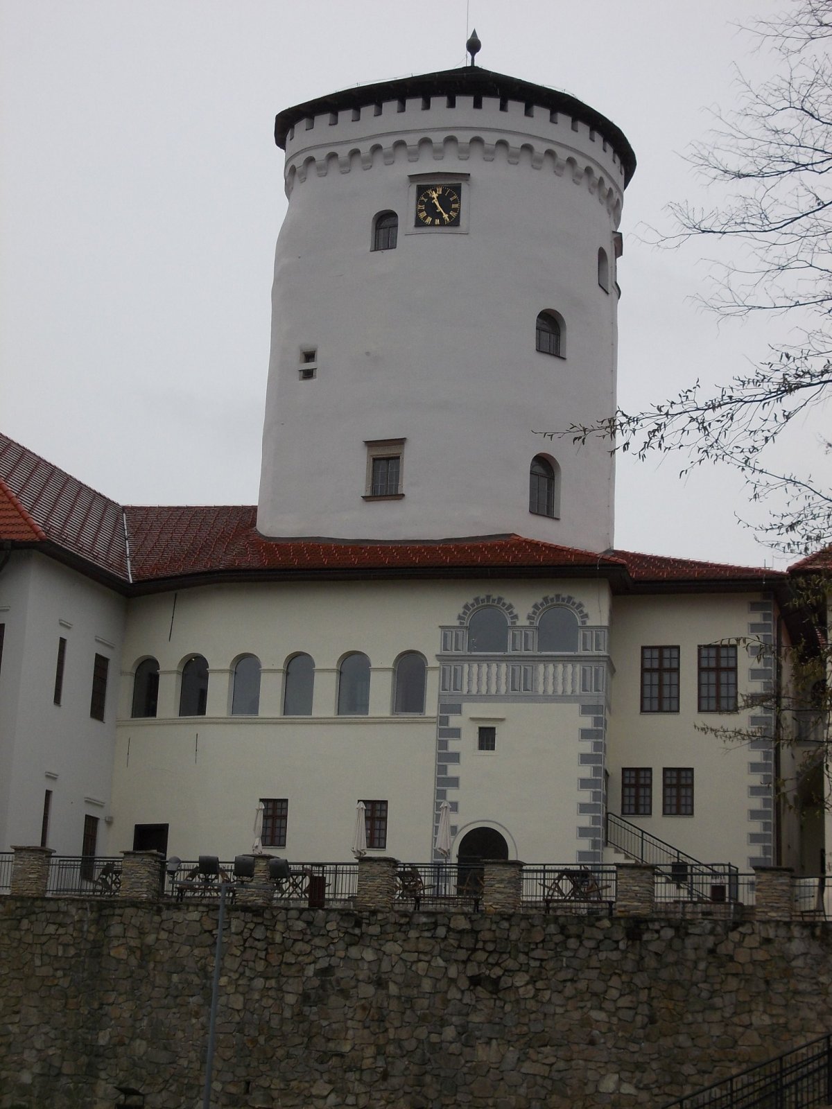 V ďalšej izbe bolo vystavených pár kúskov dobového nábytku a obrazy znázorňujúce Budatínsky hrad. A tiež krb z roku 1551 a pekné bielo-zlaté hodiny. Z tohto vstupného poschodia sme pokračovali točitým schodiskom do "Miestností máp", "Miestnosti obrazov" a "Miestnosti hodín" až na samý vrchol veže, na vyhliadku.