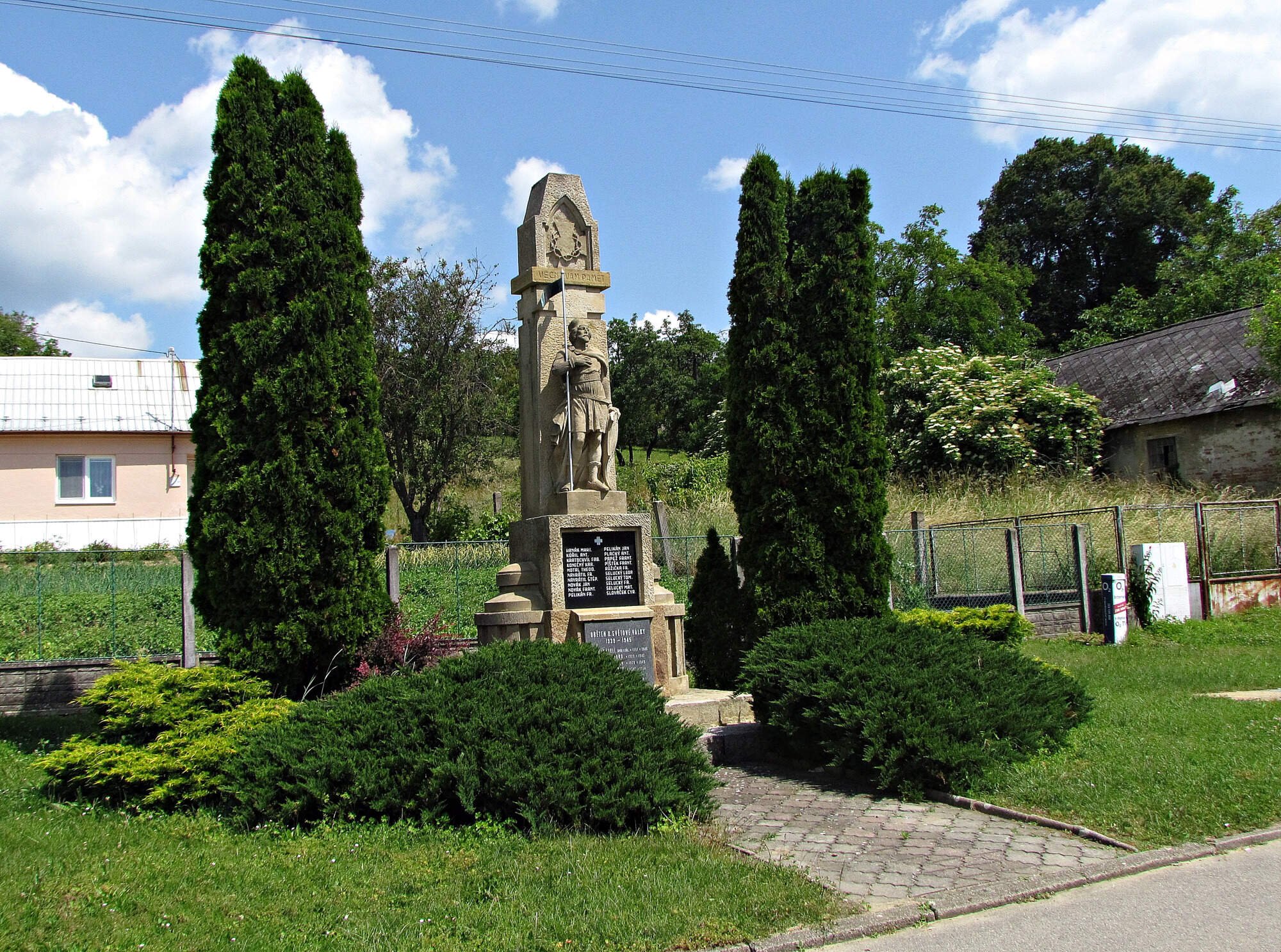 Stojí v ulici Dědina, jen asi 20 metrů východně od kaple, hned nad cestou. Místo je pěkně pietně upraveno na miniparčík. Z jeho středu se tyčí vysoký kamenný pylon se skulpturou sv.Václava a nahoře je zakončen stylizovanou trnovou Kristovou korunou a nápisem: VĚČNÁ VÁM PAMĚŤ.
