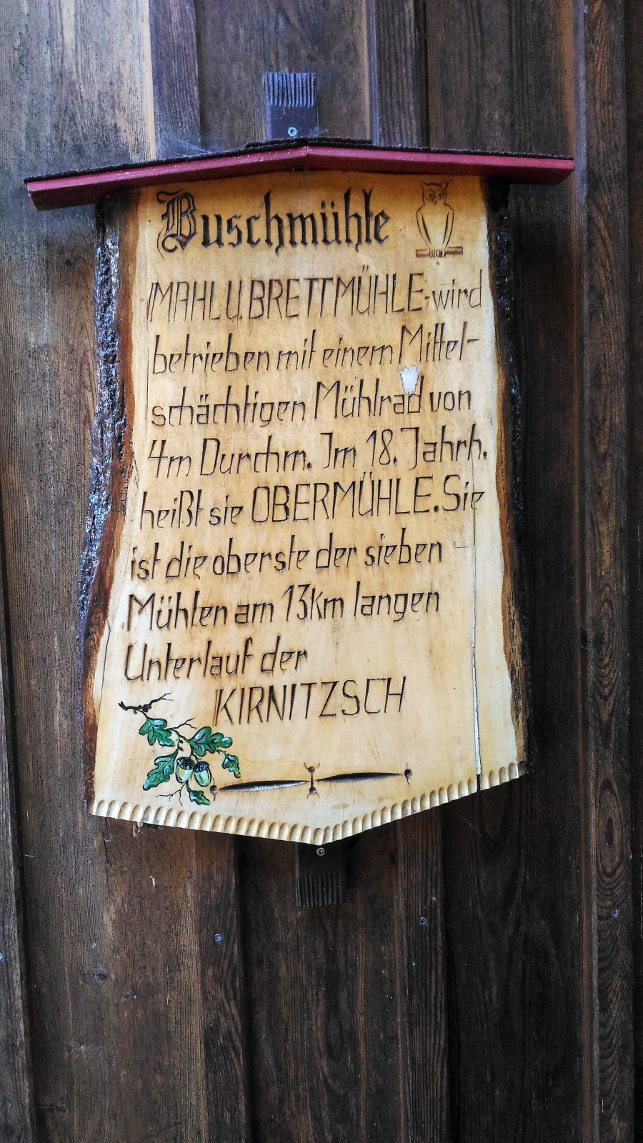 Buschmühle stojí u odbočky z hlavní silnice na Ottendorf. Využíval se jako mlýn, kovárna nebo pila.