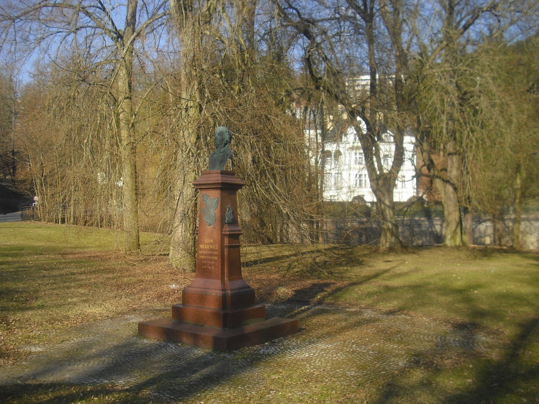Adam Mickiewicz (1798-1855) byl básník i spisovatel a představitel polského romantismu. Karlovy Vary navštívil v roce 1829. Tento pobyt připomíná bronzová busta, která je umístěna vlevo od vjezdu do areálu lázeňského sanatoria Parkhotel Richmond ze Slovenské ulice, na jižním okraji města Karlovy Vary.