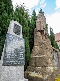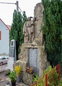 Pomníky obětem obou světových válek najdeme poblíž hřbitova, který obklopuje zdejší kostel. Větší a starší je pomník Velké války (dnes se říká 1. světová). Jde o poměrně masivní záležitost z pískovcových kamenů.