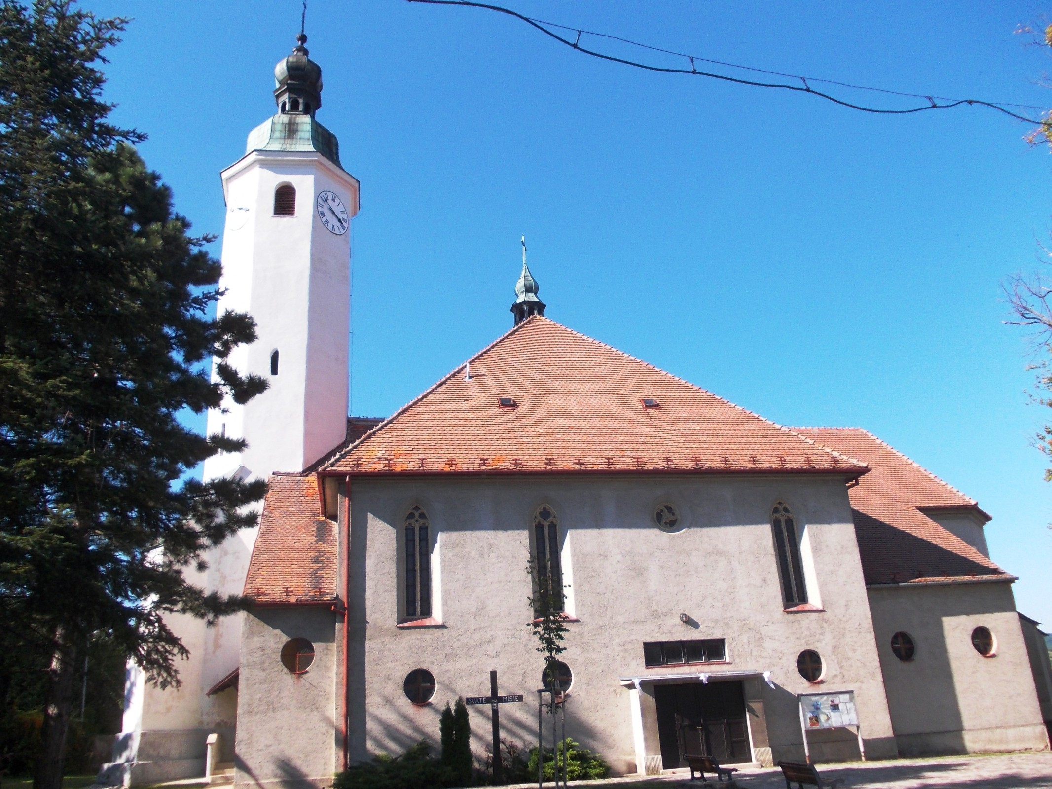 Pred kostolom je pamätník obetí 1. svetovej vojny, sú na ňom umiestnené mená padlých, v strede má socha anjela v náruči vojaka, možno ho utešuje, alebo už je mŕtvy.