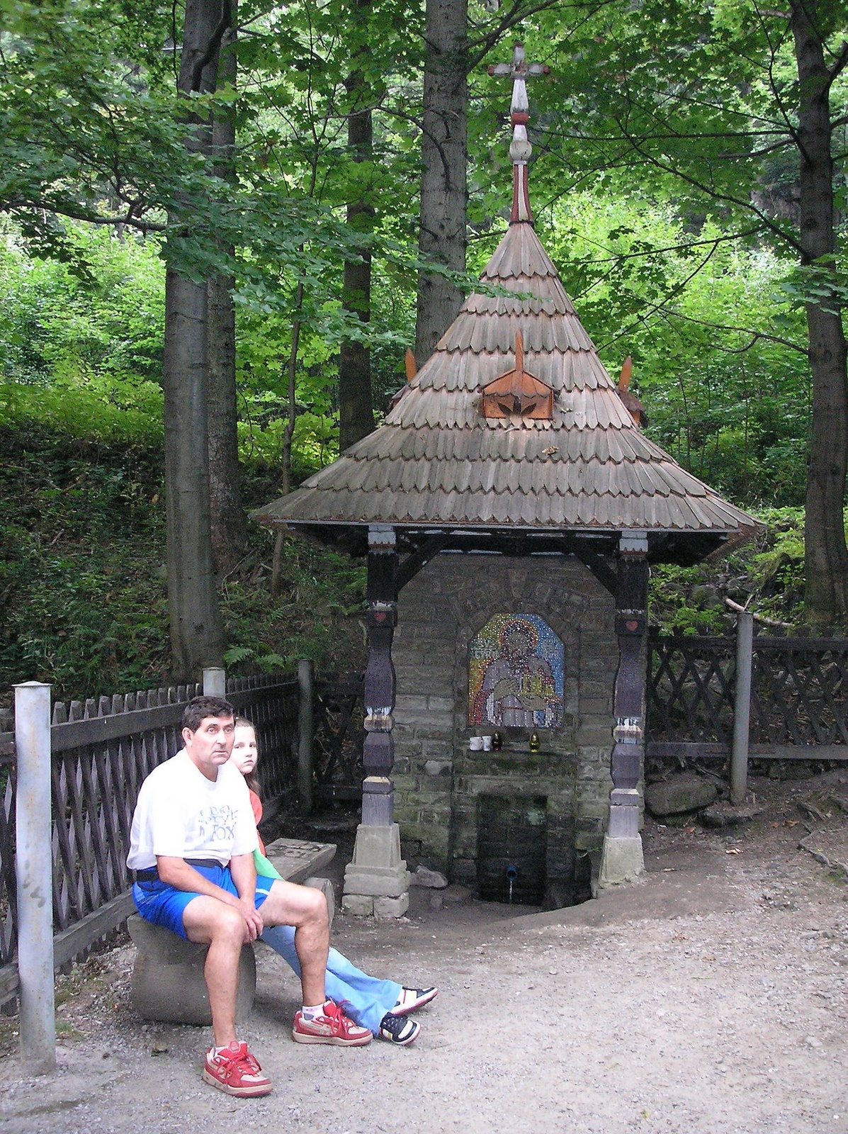 Neďaleký prameň je zastrešený. Na streche z dreveného šidla je umiestnený vyrezavaný kríž. Zadná časť altánku, z ktorého vyteká voda je z kameňa, prednú časť altánku podopierajú drevené vyrezávane stĺpy. Nad prameňom v kamennom múre je umiestnená farebná mozajka sv. Cyrila, ktorý v ruke drží maketu kostola.