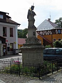 V centru obce se nachází přibližně 75 m dlouhé a 35 metrů široké veřejné prostranství, neoficiálně nazývané náměstím. Jeho vydlážděnou plochu zdobí novodobá fontána a barokní socha sv.Jana Nepomuckého, která pochází ze začátku 18.století.