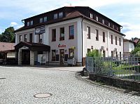 Na nejdelší západní straně náměstí najdeme budovu kina, knihovny, objekt obecního úřadu, Restauraci pod Radnicí (v téhle se vaří!) a bankomat MONETY Money Bank.