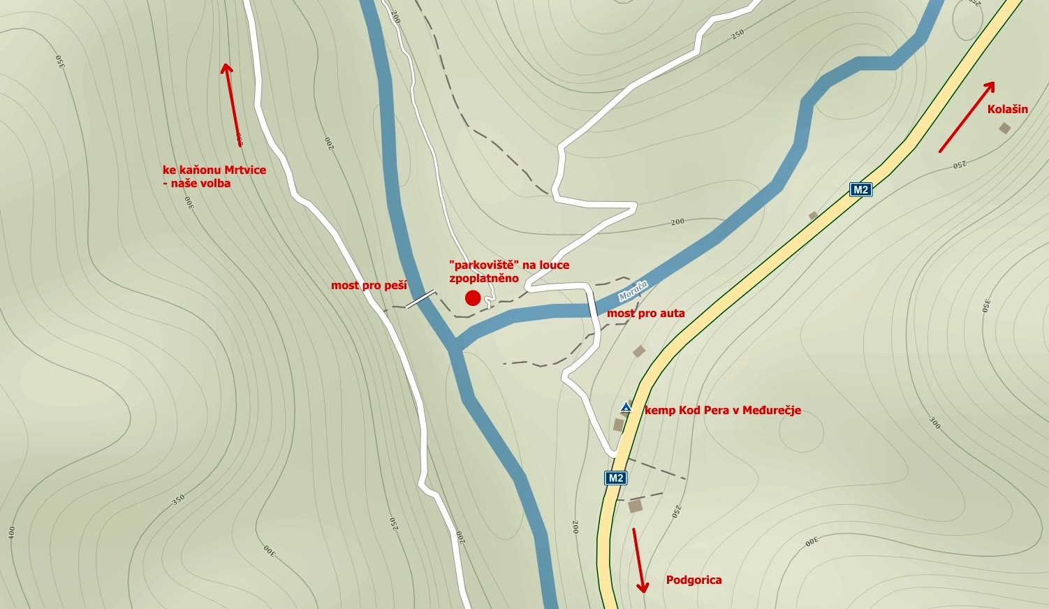 Černá Hora - Kaňon Mrtvice, mapa příjezdu ke kaňonu  autor: alexandra66