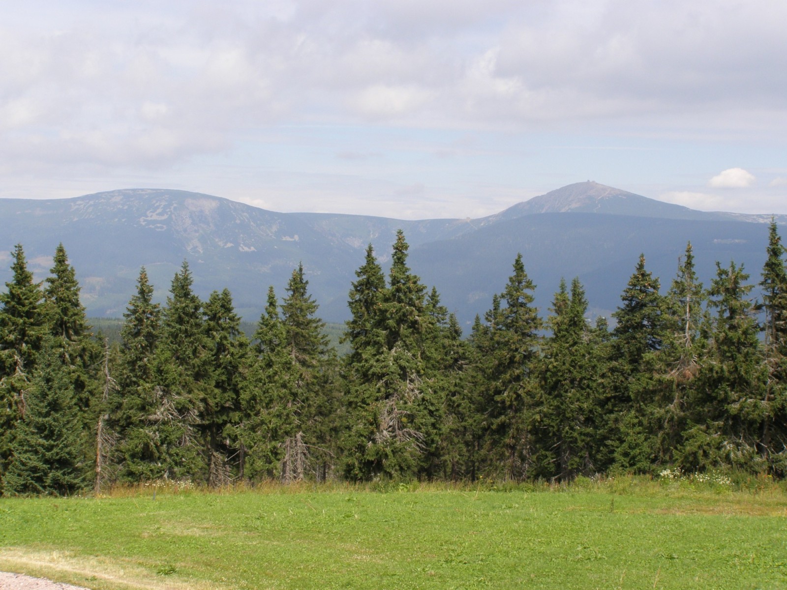 Od hotelu Černá bouda na severní straně Černé hory se nabízí krásné rozhledy na téměř celý krkonošský masiv. Z leva na Kotel, Zlaté Návrší, ale zejména na masiv Luční a Studniční hory, Obří důl a Sněžku.