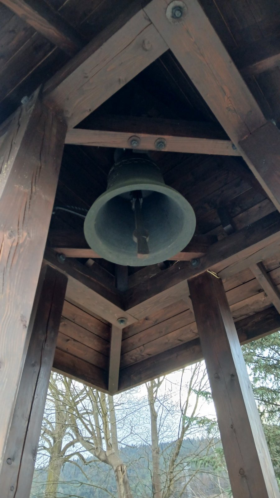 Černová - Drevená zvonička a jaskyňa Panny Márie