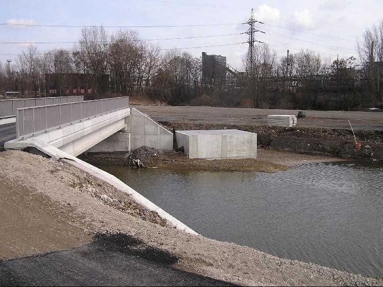 Černý potok: Černý potok - pohled na Petřkovický jez od soutoku s Odrou (záplavy 03-04/2006)