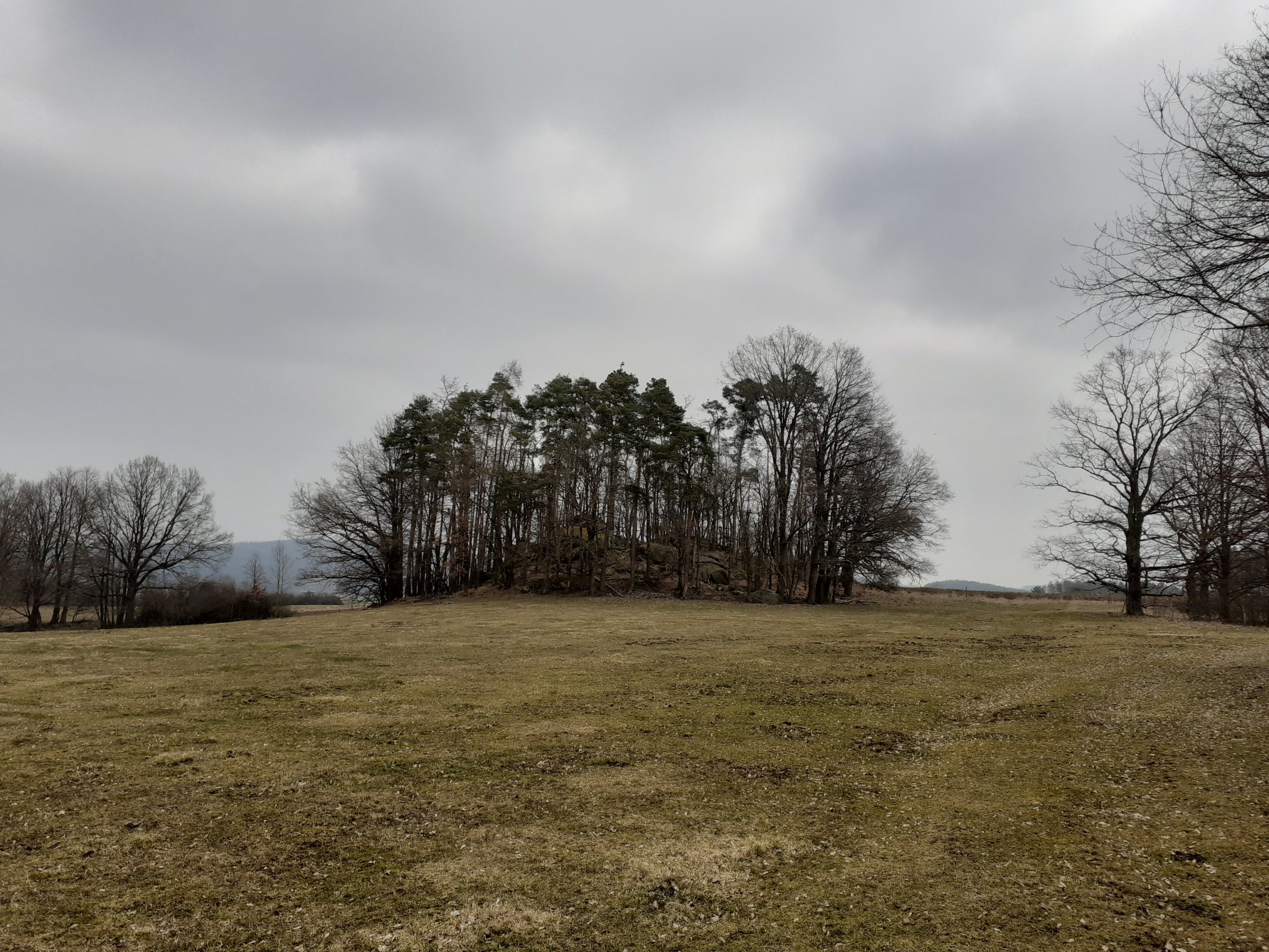 Nad Nalžovskými Horami, přesněji na částí Nalžovy, leží obec Zahrádka. Asi 300 metrů od ní východně se na lukách zvedá nevysoký pahorek s lesíkem. Leží tam plno velkých balvanů, které si zaslouží pozornost. Pahorek dnes může posloužit jako představa, jak mohla zdejší krajina vypadat před odstraněním kamenů, které bránily zemědělskému využití krajiny. Tedy před odtěžením větších balvanů a vysbíráním menších balvanů.