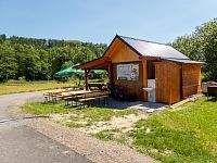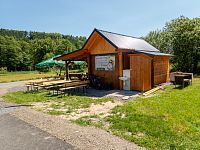 Nabízí tedy to důležité, co znavený cyklista (ale i pěší) potřebuje, nějaké to pivo, limo, párek (v aktuálním případě zelná polévka). Bufet mají na svědomí majitelé (nebo provozovatelé) restaurace a penzionu U Trojice v Červené Vodě (stavěli jsme se v zimě, celkem příjemná hospůdka). Prozatím je otevřeno o víkendech, o prázdninách slibují každý den. V době 10.00–18.00, ale jak slibují, otevření je možno prodloužit (když přijde žízeň a veselá společnost).