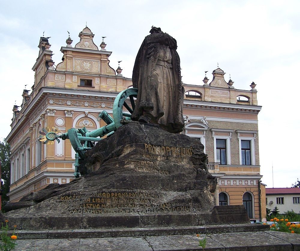 Na Husově náměstí v Českém Brodu byl v r. 1910 slavnostně odhalen monumentální pomník Prokopa Holého, zhotovený sochařem Karlem Opatrným.