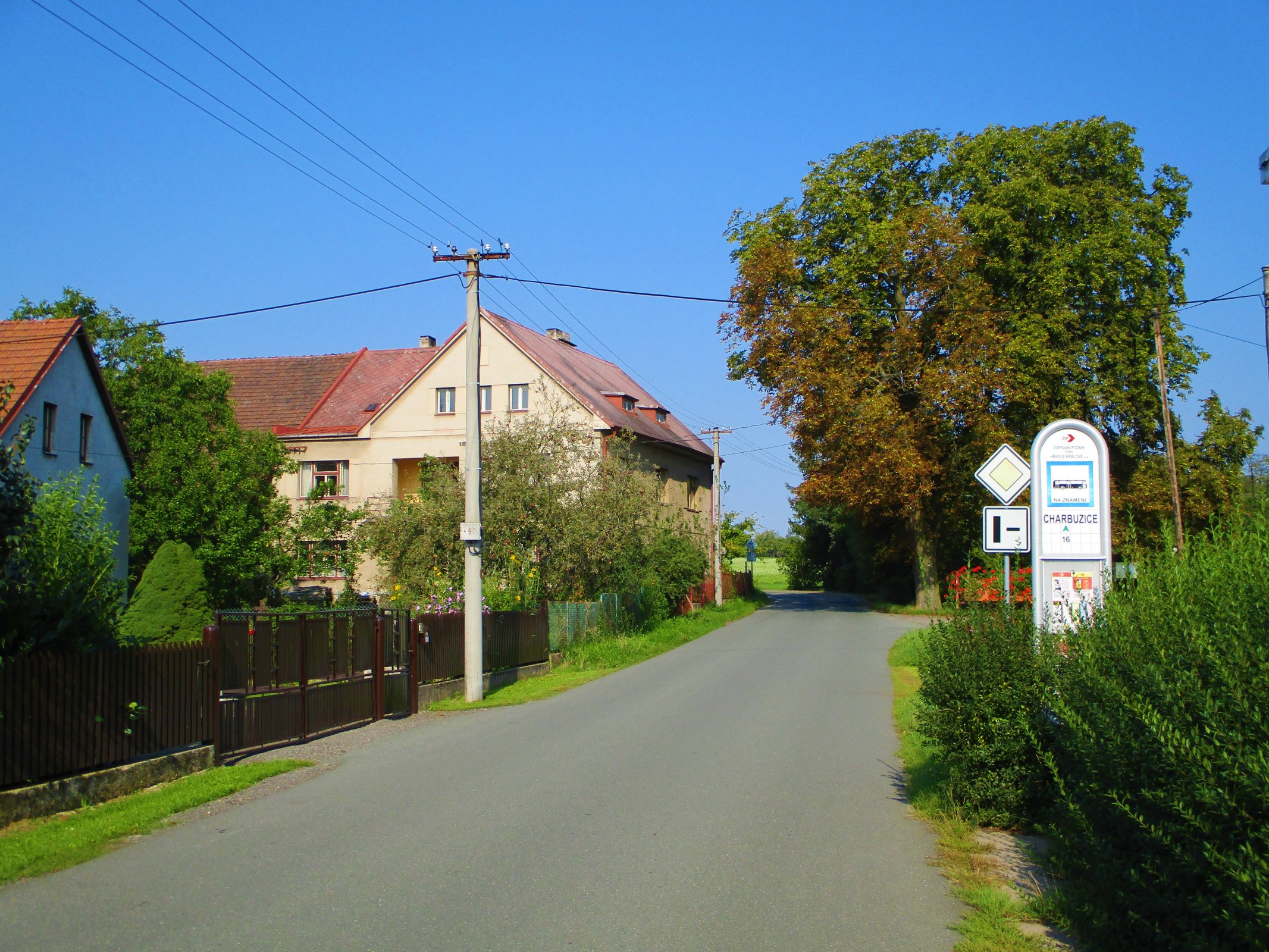 „Charbuzice (lid. v Charbuzicích, do Charbuzic), víska (m. o. Stěžírky) 8 km vých. Od Nechanic: 1547 statky zkonfiskované král. městům: Stěžerky, Charbuzice, Sedlec, PA. X, 465; 1548 ves Charbuzice, AČ. 20/518.