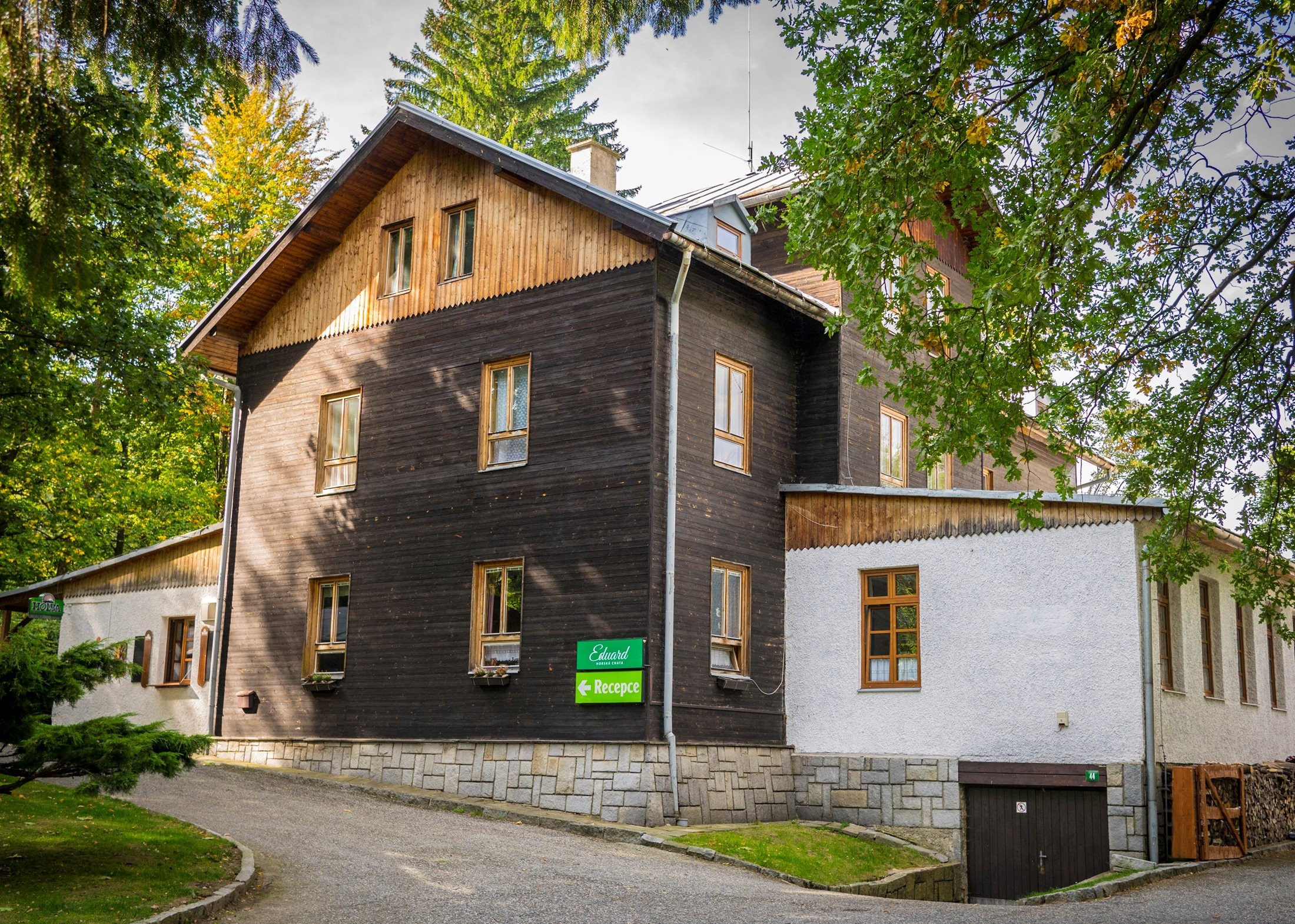 Hodnocení: Hotel Eduard nabízí ubytování v srdci Jeseníků, horském středisku Bělá pod Pradědem. Hotel je obklopen velkou zahradou s výhledem na okolní hory. Součástí hotelu je zázemí zahrady, venkovní bazén, hřiště, ohniště dětské průlezky zábavní prvky.