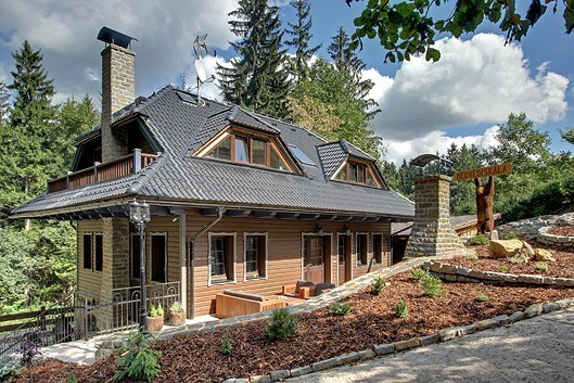 Luxusní, mimořádně atraktivní chata s masážním bazénem SPA a saunou ve svahu na velkém pozemku na samotě nad obcí Pstruží, pod Lysou horou, 15km od Frýdku-Místku v Moravskoslezkých Beskydech.