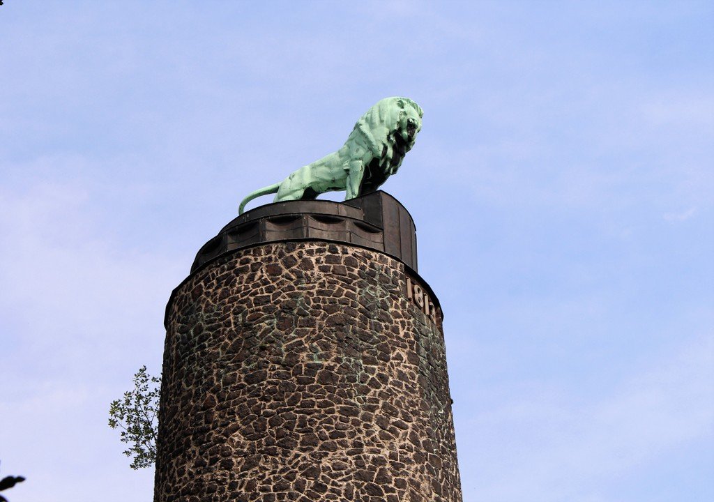 Památník se nachází na východní straně města, nedaleko silnice č. 13. Je obklopen zajímavým parkem s několika velmi hezkými starými stromy. Pro jeho stavbu se rozhodla rakouská vláda, která poskytla i finance. Samotná stavba začala navršením umělého návrší. Následovalo vybudování kamenného základu s několika stupni. Pokračovala stavba 25 metrů vysokého válce, který se k vrcholu pozvolna zužuje. Stavbu památníku provedl stavitel Antonín Plass z nedalekých Chabařovic. Na vrchol byla usazena socha mohutného měděného lva. Lev je dílem sochaře Julia Schmeidla. V dolní části památníku je kopule s freskami od malíře Karla Krattnera. Černým obdobím památníku byl konec druhé světové války. Tehdy se lev na vrcholu stal terčem stíhacích letců. I když se jednalo o zajímavou památku, přesto zůstala mnoho let na okraji zájmu. Pozvolné chátrání zastavila až skupina místních dobrovolníků, kteří v roce 1973 provedli důležitou opravu. Celkové rekonstrukce se památník dočkal až v roce 1993. V roce 1997 byly opraveny i fresky.