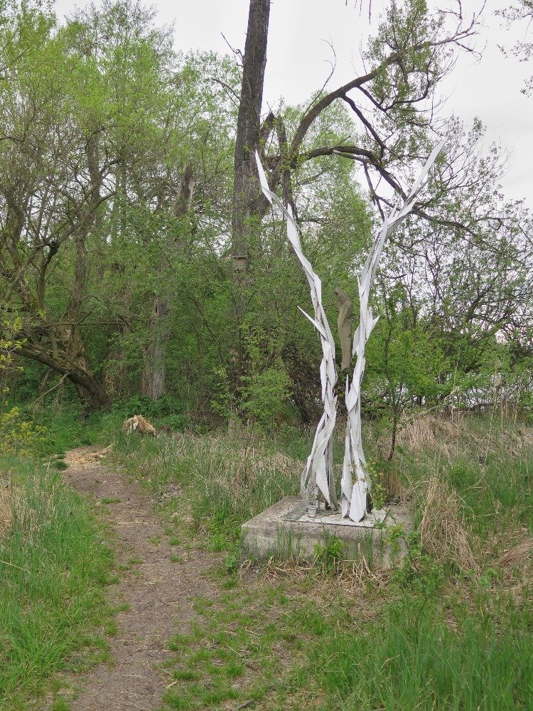 Zajímavá – ale poměrně nenápadně umístěná - skulptura je umístěna vlevo od ornitologické pozorovatelny (tedy asi 200 m od místa havárie) a určitě stojí za krátké zdržení cyklistů i pěších turistů (měla by tudy brzy vést nová cyklostezka). Koneckonců svého strážného anděla občas potřebuje každý z nás …