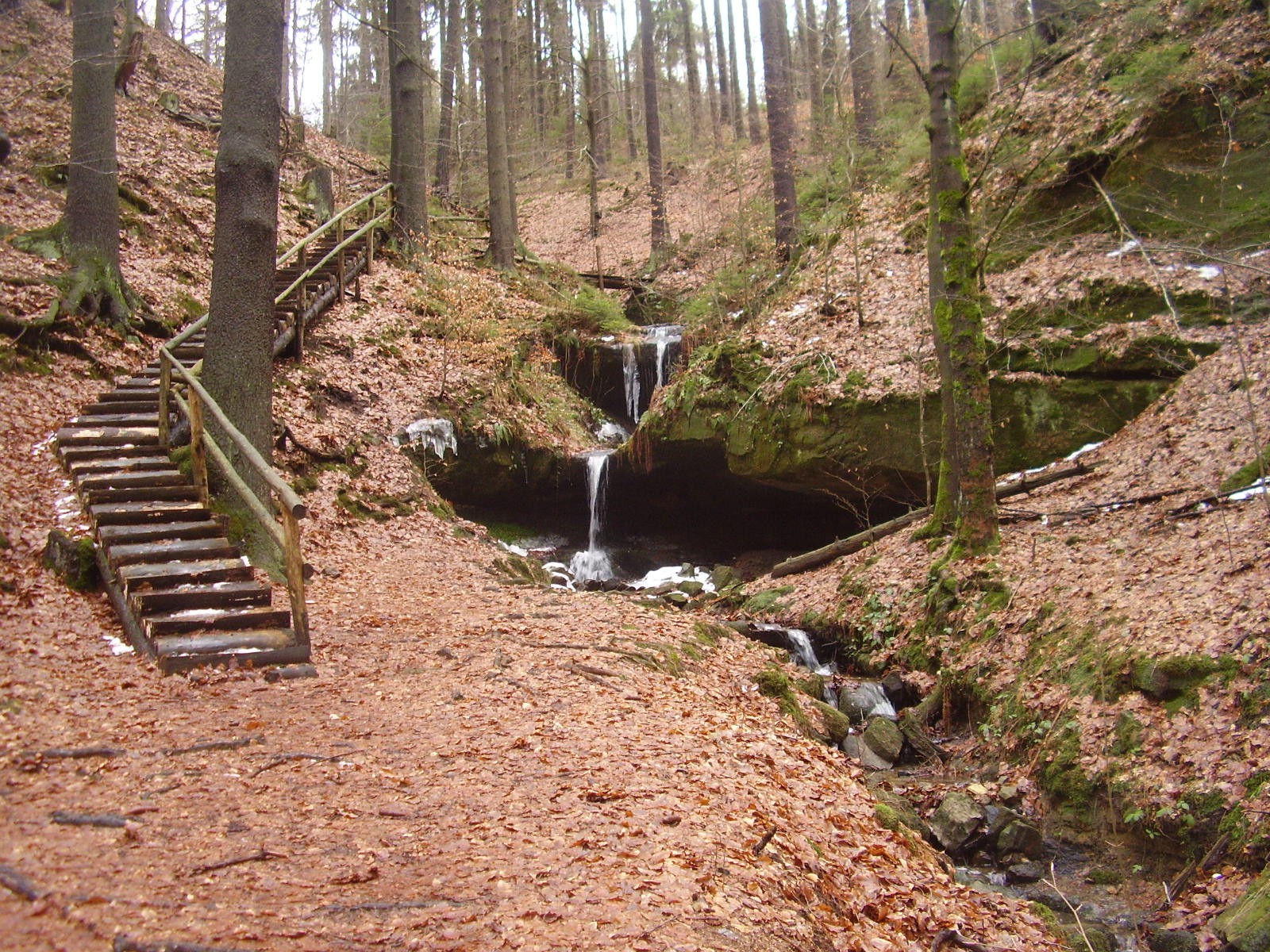 Chřibské vodopády(Luž.hory)-nedaleko Chřibské najdeme malebné tiché údolí v jehož závěru potůček vytvořil divokou rokli s nevelkým přesto krásným vodopádem a řadou kaskád.Voda zde přepadává přes dva pískovcové skalní převisy a vytváří tak menší stále aktivní vodopády.Přístupné jsou z náměstí v Chřibské po žluté trase a pod bývalou střelnicí kdy trasa uhne vpravo se dáme rovně a následně vlevo do údolí potůčku.Poté asi 600metrů proti produ.