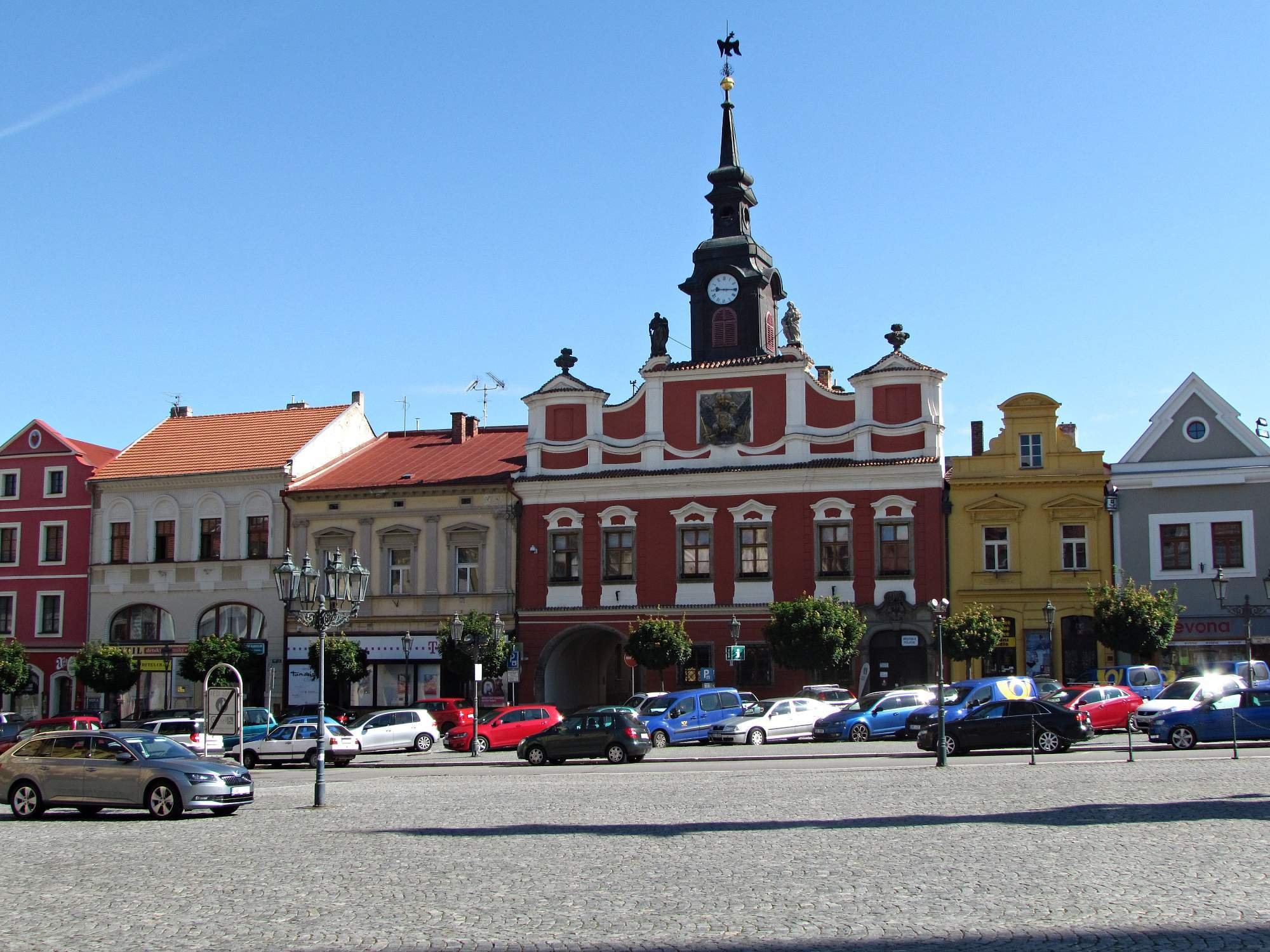 Červenobílá budova Staré radnice vznikla v půli 15.století a přestavěna byla spolu s nápisem v přízemí a překlenutím Fortenské ulice asi o stol let později. Barokní šat si oblékla po požáru, který ji poškodil roku 1806. O třicet let později byla přizdobena sochami Caritasem a Iustitionem a věžičkou s hodinami. V radnici sídlili městští radní, krom toho ale její interiéry sloužily v průběhu času též jako vězení s mučírnou a byl v nich skladován střelný prach. Dále byly využívány pro účely městského archívu a okresního soudu, policejního úřadu a sídlila v nich i vyšívačská škola.