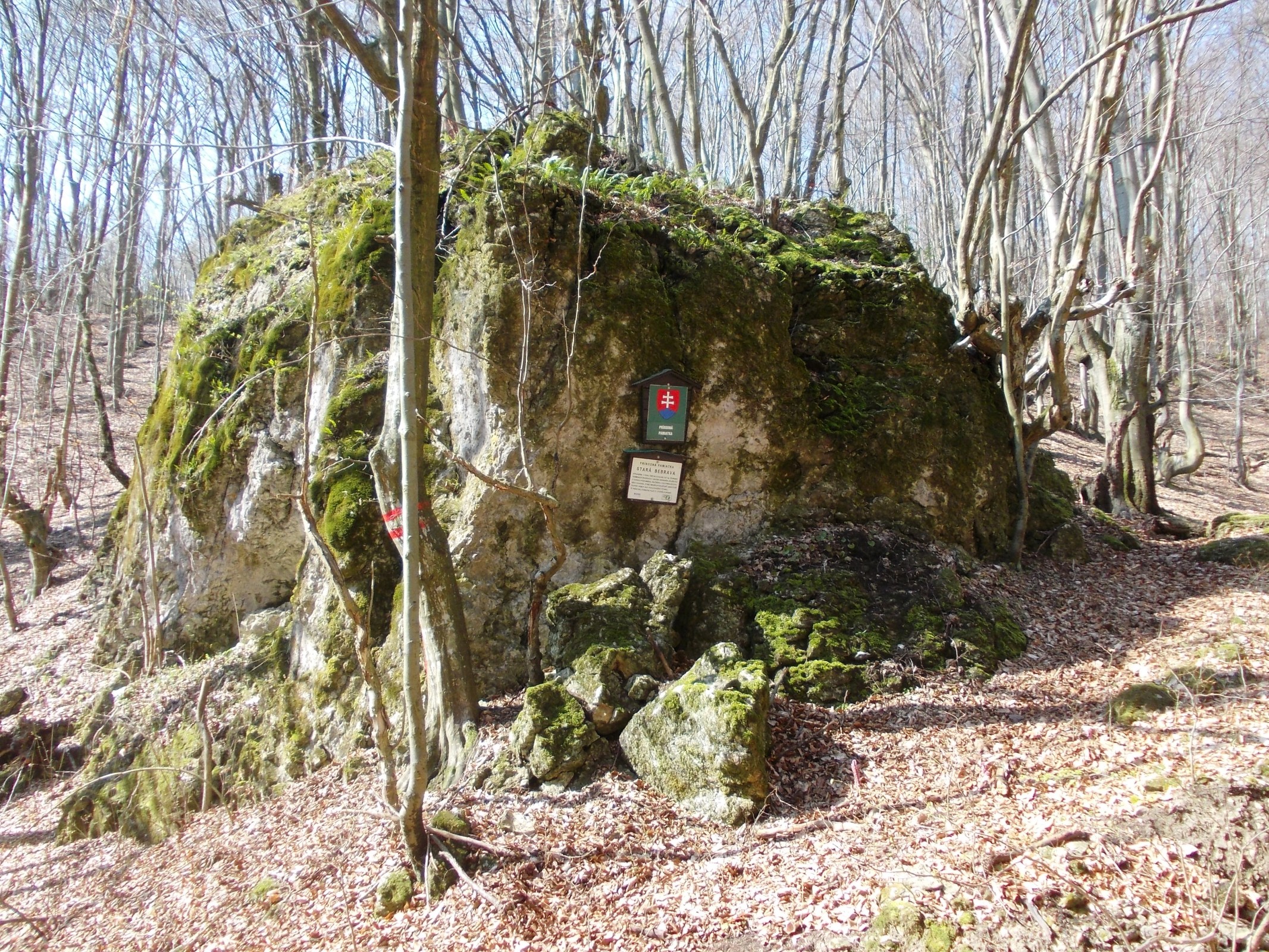 Autom sme sa doviezli do obce Čierna Lehota. Odkiaľ sme sa z konca obce vydali po zelene značenej turistickej značke, ktorá vedie na rozcestník s červenou na Rychtárske zienky. Chodník vedie za obcou najskôr po lúke a neskôr lesom , okolo tečia potôčik, jeden z prvých prítokov Bebravy, ktorá sa zarezáva v lesnom teréne za Sokolími skalami. V niektorých miestach vytvára malé vodopadíky a dopadom vody malé hrnce. Okolitý les je prevážne bukový, s množstvom menších a aj väčších kamenných útvarov, stále je v blízkosti malý potôčik. Pri chodníku je aj pomerne väčší skalný útvar s infotabuľkou a označením, že ide o prírodnú pamiatku Stará Bebrava. Podľa turistickej mapy sa v masíve Starej Bebravy nachádzajú aj dve jaskyne, prístup k nim nie je značený a my sme po nich ani moc nepátrali, takže nevieme, kde sa presne nachádzajú. Prírodná pamiatka Stará Bebrava bola vyhlásená v roku 1987. Rozprestiera sa na rozlohe 5,91 hektara. V tejto prírodnej pamiatke platí 5. stupeň ochrany. Ide o ochranu skamenelín živočíchov z obdobia druhohôr, dôležitých z vedeckovýskumného, náučného a kultúrno - výchovného hľadiska, ktoré umožňuje odlišovať jednotlivé skupiny kriedy a geologického útvaru.