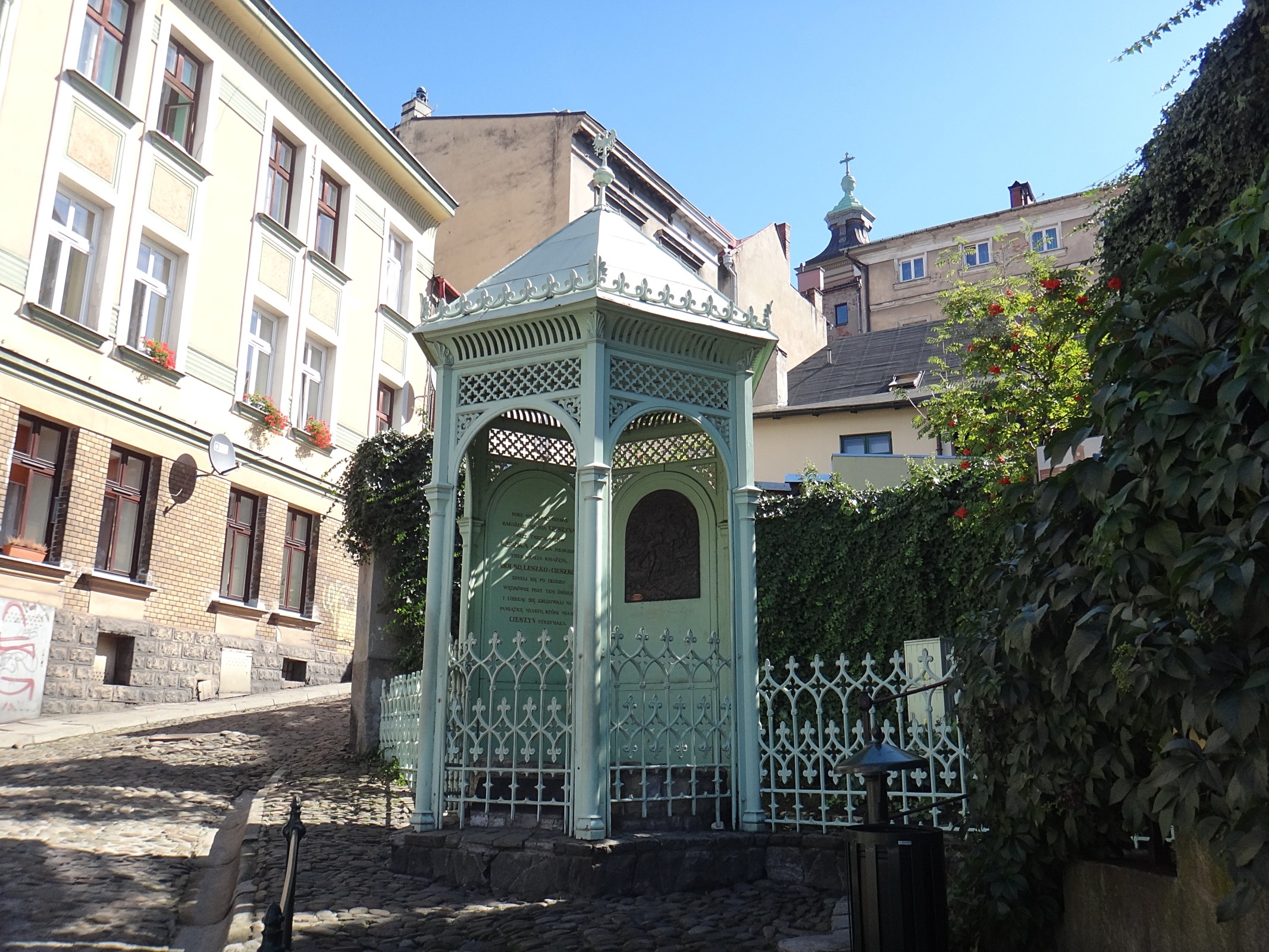 Cieszyn byl dle pověsti založen roku 810, a to na místě zvaném Studna tří bratří. První písemná zmínka je až z r. 1155 v bulle papeže Hadriána IV. Dle legendy se na tomto místě u pramene setkali po dlouhé době tři synové polského krále Leška III. - Lešek, Těšek a Bolek. Zde založili nové město. Bratři se ze setkání "těšili" a od tohoto slova je odvozeno jeho jméno. Okrasný litinový altán nad studnou byl zhotoven roku 1868 v Třineckých železárnách. Dříve byly zde nápisy v jazyce polském, latinském a německém, nyní německý již není, je nahrazen reliéfem. Studna tří bratří se nachází ve stejnojmenné strmé uličce dlážděné kočičími hlavami. Naproti stojí nejvyšší dům staré části Cieszyna a v uličce je vinárna u Czecha. Toto říká legenda. Podle archeologických nalezišť hradiště na Zámeckém vrchu bylo již známo v 6.-5. stol. př.n.l. Nyní je to hradiště Podobora v dnešní Chotěbuzi známé jako Starý Těšín. viz Archeopark Chotěbuz.