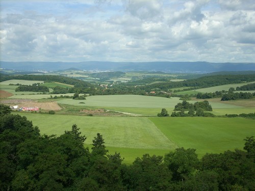 V dálce prosvítává Labe a taky malá zřícenina hradu Kamýku