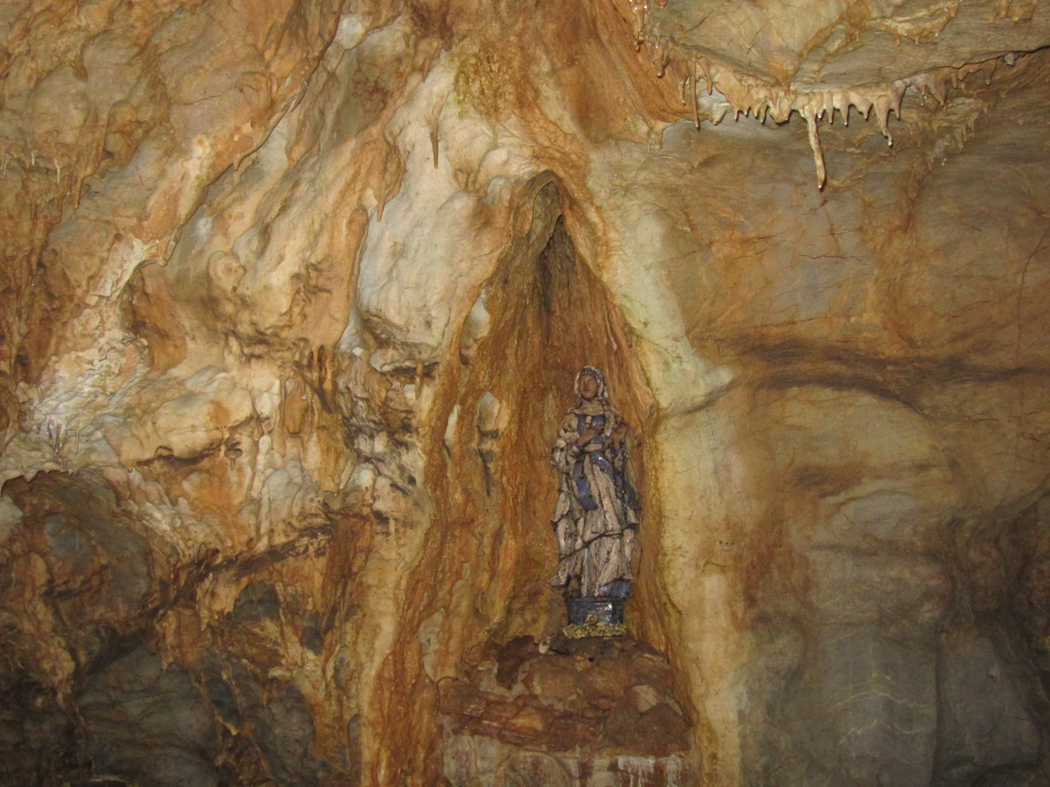 Jedno z jezer v Císařské jeskyni a lávka přes něj