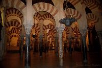 Mazquita - Catedral de Córdoba tak zní oficiální název jedné z nejúžasnějších církevních staveb. Stojí na místě původního germánského vizigótského chrámu. V 8. století po dobytí Hispánie Maury začala jeho přestavba na mešitu, která trvala 200 let. V roce 1236 dobyl kastilský král Córdobu zpět a jěště téhož roku byla mešita přeměněna zpět na křesťanský kostel. Dalšícj 250 let byly uskutečňovány drobné dostavby. V 16. století bylo započato se stavbou katedrály, která je 179 metrů dlouhá a 134 metrů široká. Rozkládá se na 23000 m2 a její součástí je také pomerančová zahrada.