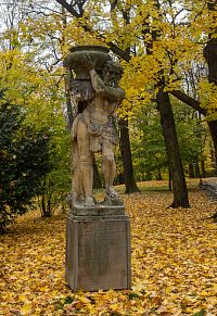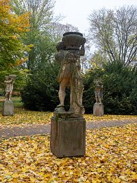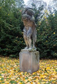 Podzimní Herkules už je muž postarší, ale stále v pevném postoji, lví hlavu má už posazenou na hlavě a na ní i vázu. Socha zimního Herkula je pak už přeci jen shrbená a vázu má spíše na bedrech.