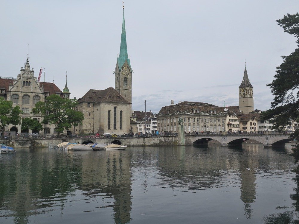 Poznáváme Švýcarsko - 3. den: Zürich, největší švýcarské město, trošku historie, procházka starým městem přes 4 největší kostely (Grossmünster, Fraumünster, St. Peter, Wasserkirche), procházka podle jezera, pivovar sBier