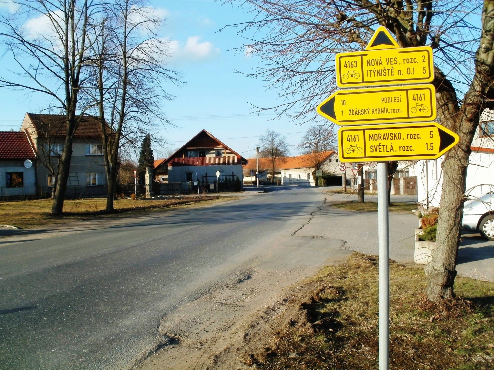 Cykloturistické rozcestníky, které se nachází v prostoru návsi ve Žďáru nad Orlicí ukazují cyklistům cestu do více směrů. Po trase č. trase č. 4161 ve směru rozcestí Moravsko - Podlesí a po trase č. 4163 ve směru Nová Ves (rozcestí) - Borohrádek.