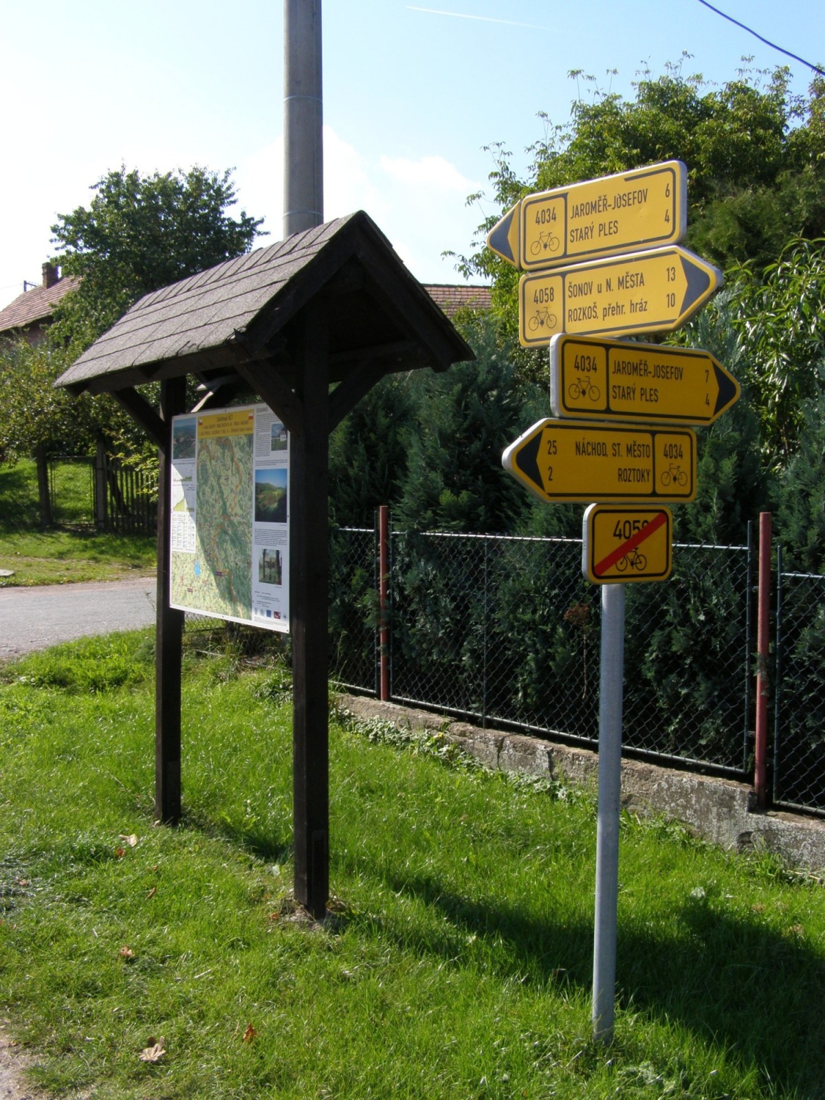 Cyktoturistický rozcestník, který se nachází na návsi v Šestajovicích, ukazuje cykloturistům cestu ve více směrech. A to po trase č. 4034 ve směru Josefov - Nové Město nad Metují a po trase č. 4058 ve směru Šestajovice - Rozkoš.