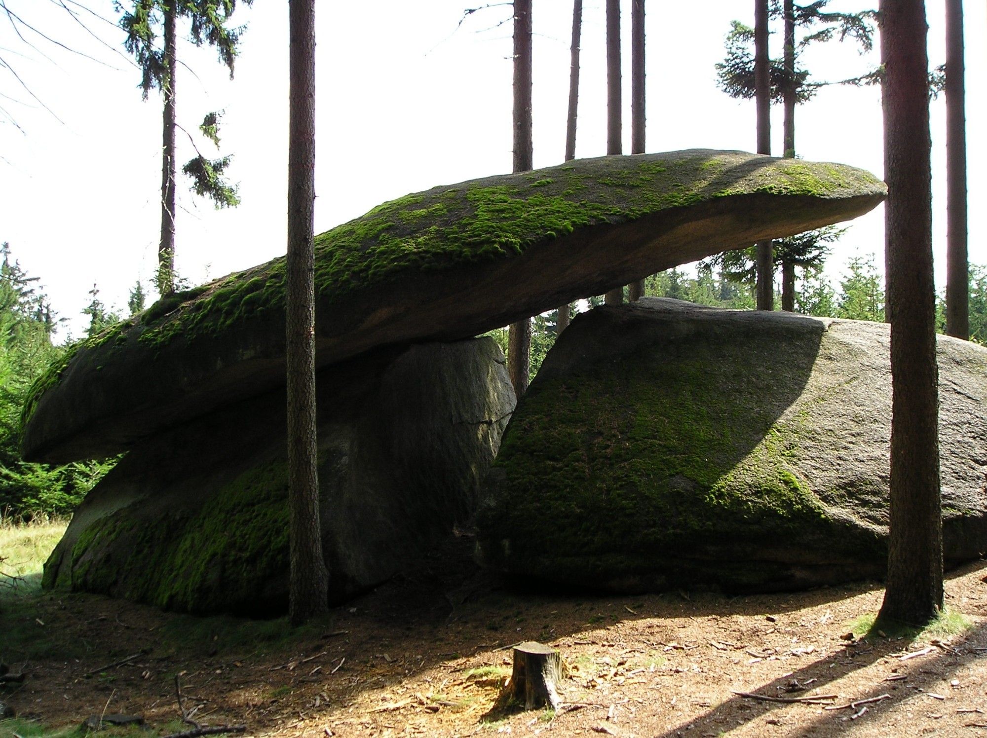Seskupení balvanů, z nichž největší je rozříznut jako bochník chleba. Leží v lese těsně vedle červené turistické cesty asi 1 km západně od Zvůle.