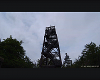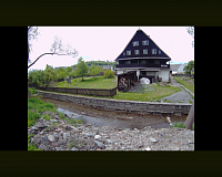 Ještě se jdu podívat kde je v Karlovicích muzeum a pak se vracím zpět na trasu pochodu. To nejzajímavější a nejtěžší teprve přijde. Při stoupání do serpentin nad Karlovicemi se začíná zvedat vítr, tmavnout mraky na obloze a v dálce slyším hromy. Po chvíli vidím i blesky. Ani na okamžik nemusím přemýšlet nad tím co přijde, je mi jasné, že předpověď se nemýlila. Jedinou otázkou je za jak dlouho. Hádám, že nejpozději za půl hodiny musí přijít „ulicha“. Nemýlím se, tedy jen trochu. Nebe se otevřelo zhruba o deset minut dříve. Drobné mrholení ignoruji a dělám jako, že nic. Když se na jedné odbočce dostanu k menšímu černému minijezírku (to ještě není Malé mořské oko), tak se již spouští z oblohy mnohem větší dávka vody, sem tam zafouká pořádně silný vítr. Něco se mě snaží od hledání toho správného jezírka (zatopeného lůmku) odradit. Ale já se jen tak nevzdám. Čím více se do hloubi luk se značně vzrostlou trávou nořím, tím nevděčnější počasí je. Zvedá se mlha a ledový déšť mi s plnou silou větru bije ledovou vodu do tváře. Chvílemi je takový fukeřov, že bych vše nejradši vzdal a někam se zašil. Není ovšem kam. Chvílemi sněží. Vysoká modrá tráva mi vhání vodu do bot. Vše už je jedno, jsem mokrý jako ščur. Poslední mikinu v batohu si šetřím na ty nejhorší časy, tedy spíš až na cestu vlakem, kdy se zastavím a zima bude nejvlezlejší. Značně ji znásobí i únava. Vím, že kdybych se na Malé mořské oko vykašlal, tak si ušetřím minimálně půl až hodinu drahocenného času a vnitřní energie. Přese vše nechci hledání vzdát. Motám se neznámou a v tomto počasí velice drsnou krajinou. Po chvíli už nevím kde jsem šel a kde ne. A to jsem se snažil občas dívat i za sebe hlavně na křižovatkách cestiček. Na začátku se pohybuji podél jakéhosi plotu z pletiva, asi stráží něco, kam bych neměl chodit. Kde se dá, tak prokukuji skrz, ale nic nápadného se mi uzřít nedaří. Nakonec to vypadá, že zde cesta neprostupně končí a já se nesnažím jít hlavou proti zdi. Otáčím se a dostávám se na cestičku, kterou jsem přišel. Déšť ani vítr neustává. Stále se nemíním vzdát a oplocenou oblast se snažím obejít. Nacházím další, snad paralelní, nenápadnou pěšinku po které se snažím vydat dále. Počasí se snažím nevnímat, ale je to těžké. V některých okamžicích, skoro jako by snad zase chtělo prosvěcovat Slunce, ale to je jen iluze nebo sen. V jednom místě se odpojuje cestička doleva vedoucí na nějaký minivrcholek. Nějak se mi tam teď nechce. Možná, že to byla ten den ta nejzásadnější chyba kterou jsem udělal. Asi už jsem byl psím počasím a celkovou ponurou atmosférou „ubit“ a neměl zájem o jakékoliv další stoupání…