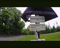 Po seběhu mám za sebou asi patnáct kilometrů a po pohodlné asfaltové cestě a potoku „Kotel“ se vydávám dále. Za pár kilometrů se dostanu na jedno z nejkrásnějších míst celého pochodu – PR Krasovský kotel. Počasí je sychravé, možná mírně mží. Nic, co bych si nějak výrazněji uvědomoval. Alespoň není vedro. Mokřady Krasovského kotle jsou kouzelné vždy, občas je třeba hledat tu správnou cestičku. Sestup přes sjezdovku ve Vráclávku je mnohem náročnější a pomalejší než by mohlo na začátku vypadat a to především pro vzrostlou trávu. Je třeba se vyhýbat ohradníku omezující louky pro dobytek. Jsem rád, když jsem dole, protože seběh tímto terénem může být kdykoliv oceněn šipkou dolů. Na autobusové zastávce mám 19 kilometrů za sebou a dávám si zasloužený odpočinek a svačinku. Vím, že zdaleka nemám za sebou ani polovinu cesty, ale když se bude velice dařit, tak „únavově“ určitě ne více než třetinu, spíš jen čtvrtinu celé trasy. To ještě nevím co přijde a v některých okamžicích si skoro myslím, že se dnes nějak meteorologům předpověď nevydaří. To se tak jenom nyní zdá. Předpověď se vydaří i s úroky.