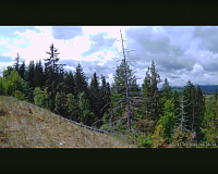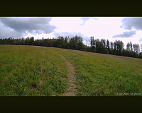 Po napojení se nad sanatorium si již mohu dopřát i chůzi, myslím, že ztrátu na startu jsem alespoň trochu srovnal. Kde se dá tam popoběhnu, kde se mi nechce, tak tam se kochám odpočinkovou „lehkostí“ chůze. I tak se snažím jít svižně. Klesání a menší rovinky se pochopitelně snažím proběhnout. Nesmím se během nechat unést příliš, protože vím, že na jednom z pochodů jsem se ztratil na louce před zhruba 12 kilometrem pochodu a ztratil obrovské množství času a energie. Zde je třeba velice dobře sledovat „volavky“ – výrazné velké turistické značky viditelné i z dálky. Cesta je místy blátivá, ale jde to. Po necelých třinácti kilometrech od startu se dostávám k přístřešku mezi Lysou horou a Portálem. Zde se ještě cítím dobře, ale při návratu to již bývá jako jakýsi ostrůvek naděje a odpočinku. Zde se oblouček odpoledne připojí na pár kilometrů na stejnou cestu jako teď dopoledne. Po žluté turistické značce obcházím kopce Lysá hora a Uhlák. Půlkilometrové klesání přes Zadní Uhlák je hodně technický a určitě běžím mnohem pomaleji než by se mohlo.