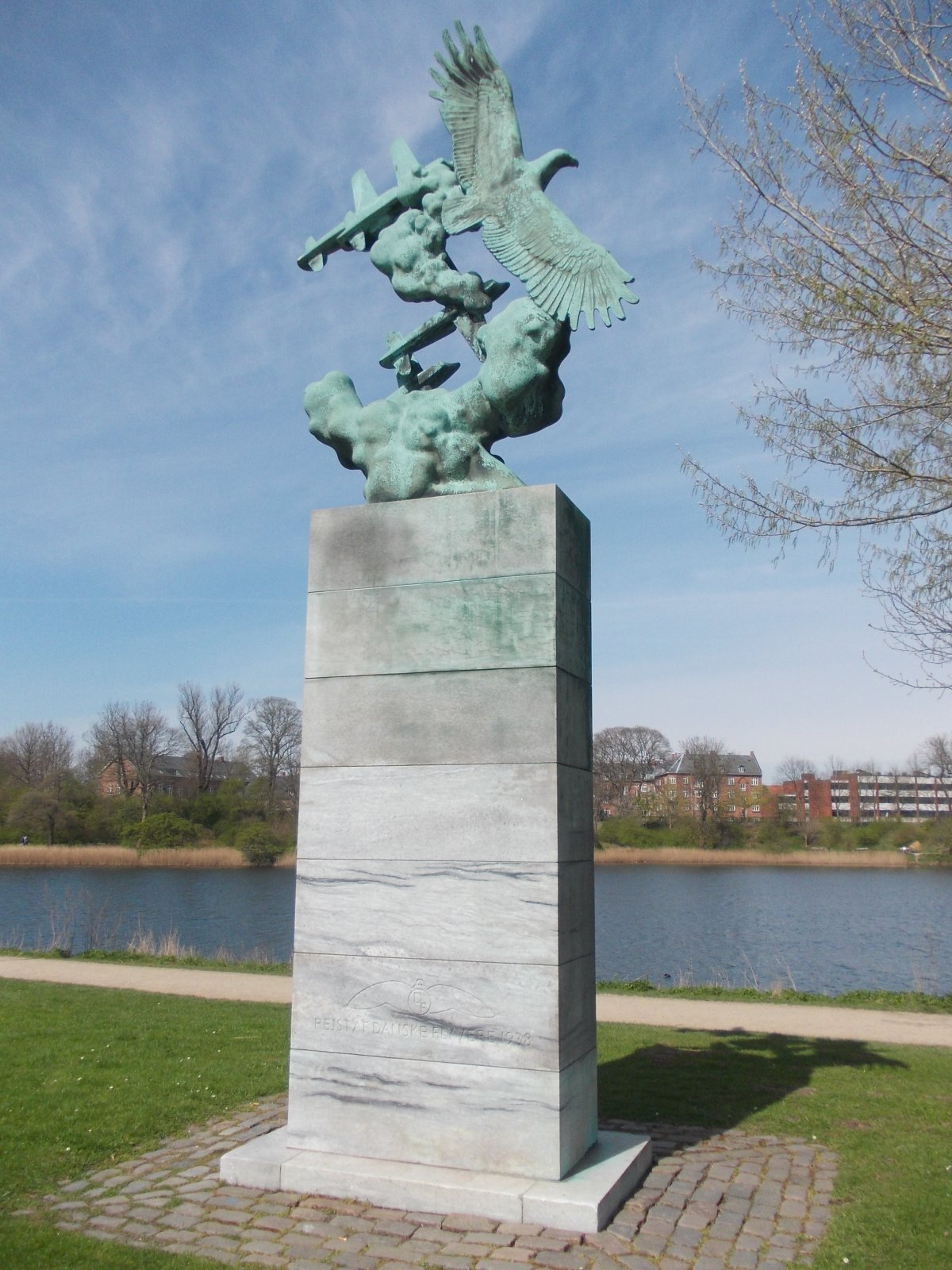 Na pamätníku sú zobrazené štyri lietadlá v lete. Súčastne s nimi letí obrovský orol a spoločne sú pospájaní s oblakmi. Pamätník odhalili 1938 k pamiatke dánskym letcom, ktorí položili svoje životy počas letov v boji o Dánsko, ale aj počas civilných letov.