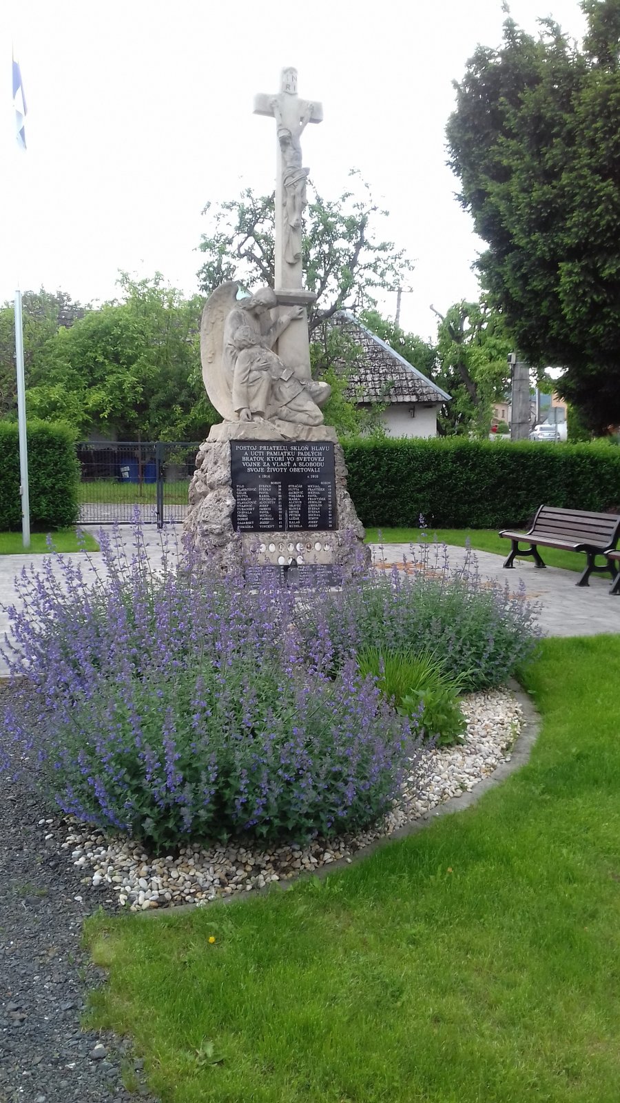 Pomník je postavený v strede obce, je to v takom trojuholníku, strede križovatky hlavnej cesty a cesty smer Dobrá Voda.