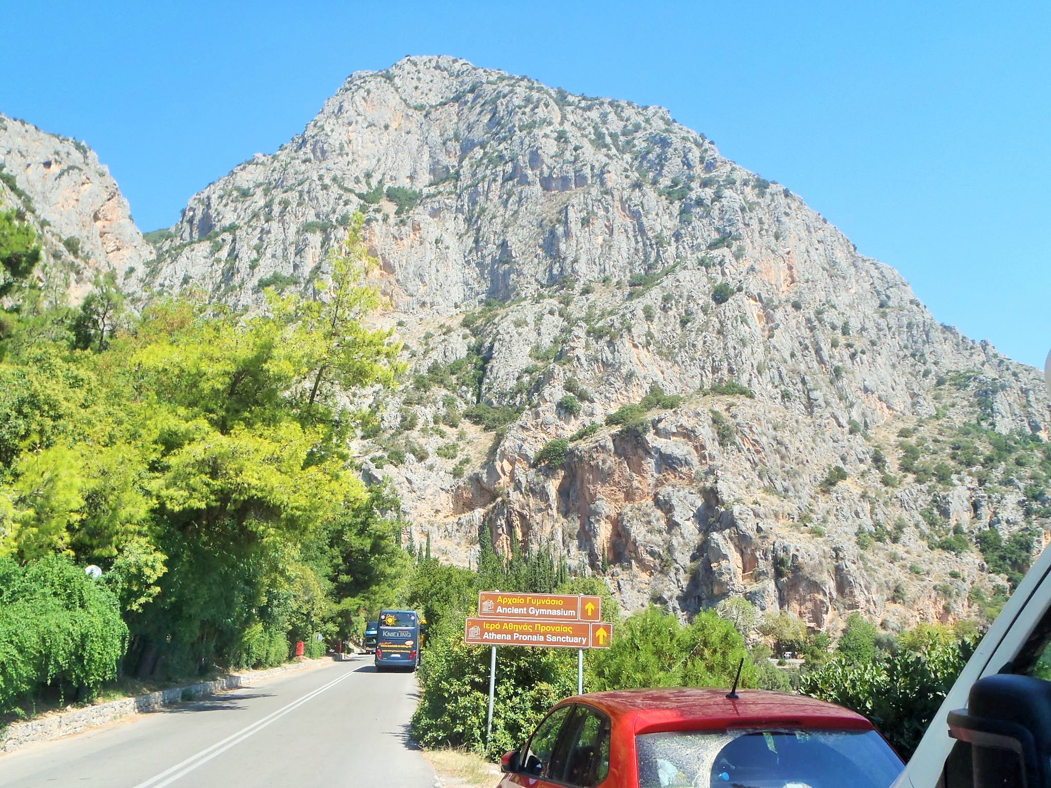 U horní části delfských vykopávek je velké parkoviště a z něj se dostanete na všechna zajímavá místa. Vstup do areálu horní části bylo 6 eur, nebo společně s muzeem 9 eur (září 2015).
