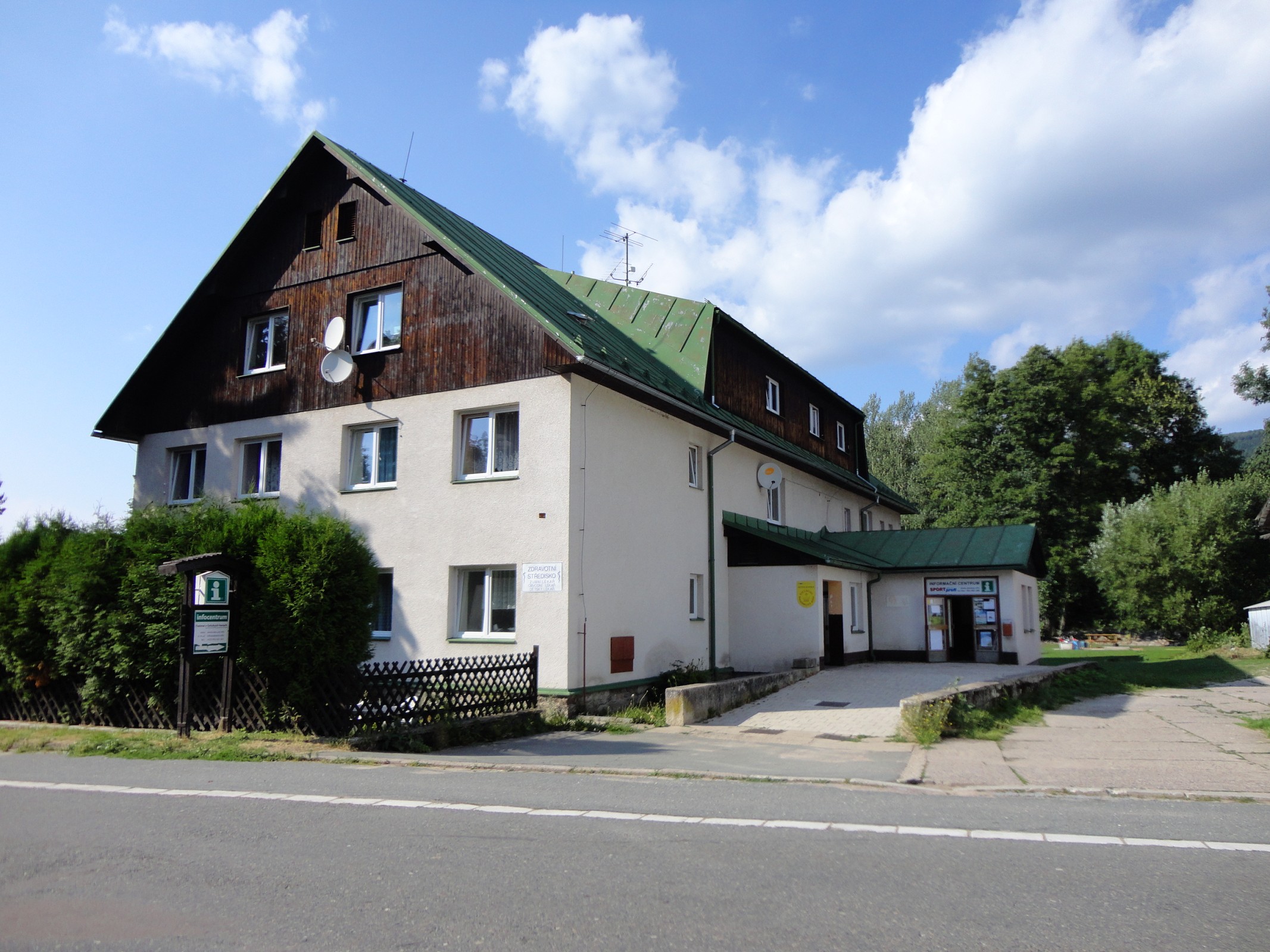 Informační centrum v Dešném se nachází při silnici nedaleko parkoviště u dolní stanice lyžařských vleků.