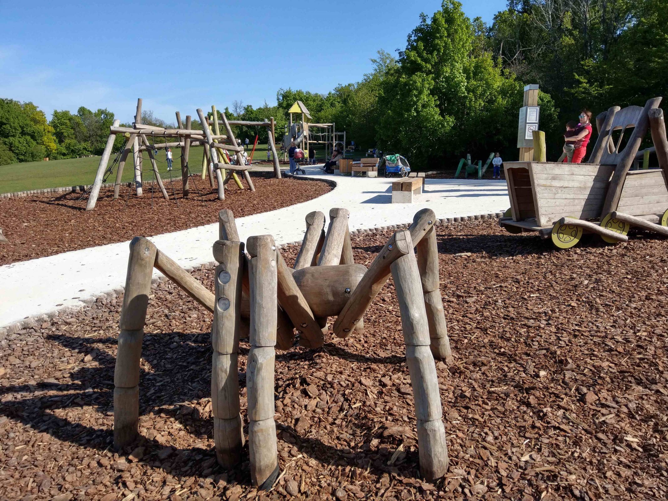 Na pekné drevené detské ihrisko narazíte ak sa z parkoviska Normafa vyberiete upravených chodníčkom na vyhliadku smerom k lanovke. Trasa má 2,6 km, chodníček je vhodný aj pre kočáre. Ihrisko sa nachádza v úvodnej časti s názvom Anna-rét.