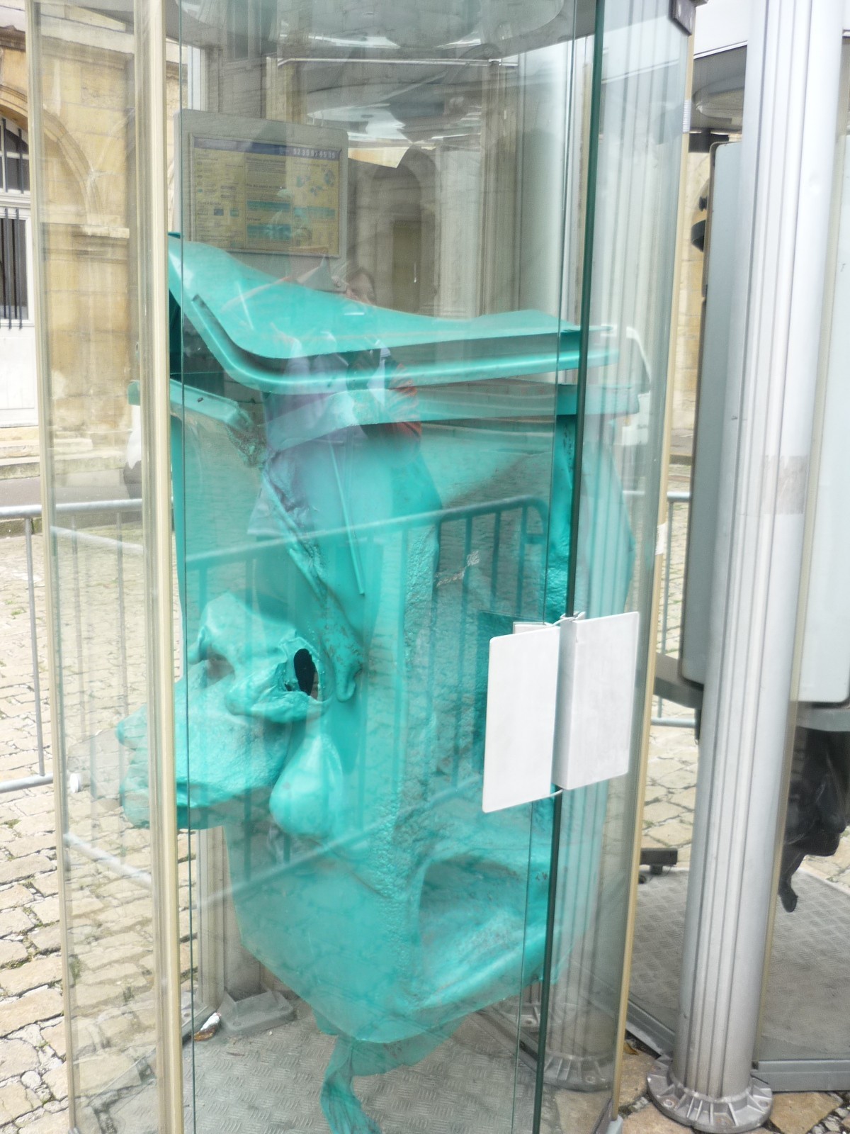 Že ulice může zdobit cokoliv, je už známé. Ale historické jádro města s poškozenými plastovými popelnicemi? I to je umění, řekli si obyvatelé Dijonu a v blízkosti své největší a nejznámější památky, umístili dílo mladého autora, který různým způsobem poničil kontejnery na odpadky. Nevím, jestli jde pouze o dočasnou výstavu, ale toto seskupení zde stojí více jak rok. Je tedy více než pravděpodobné, že na ně při své návštěvě narazíte. Najdetet jej naproti Radnici.