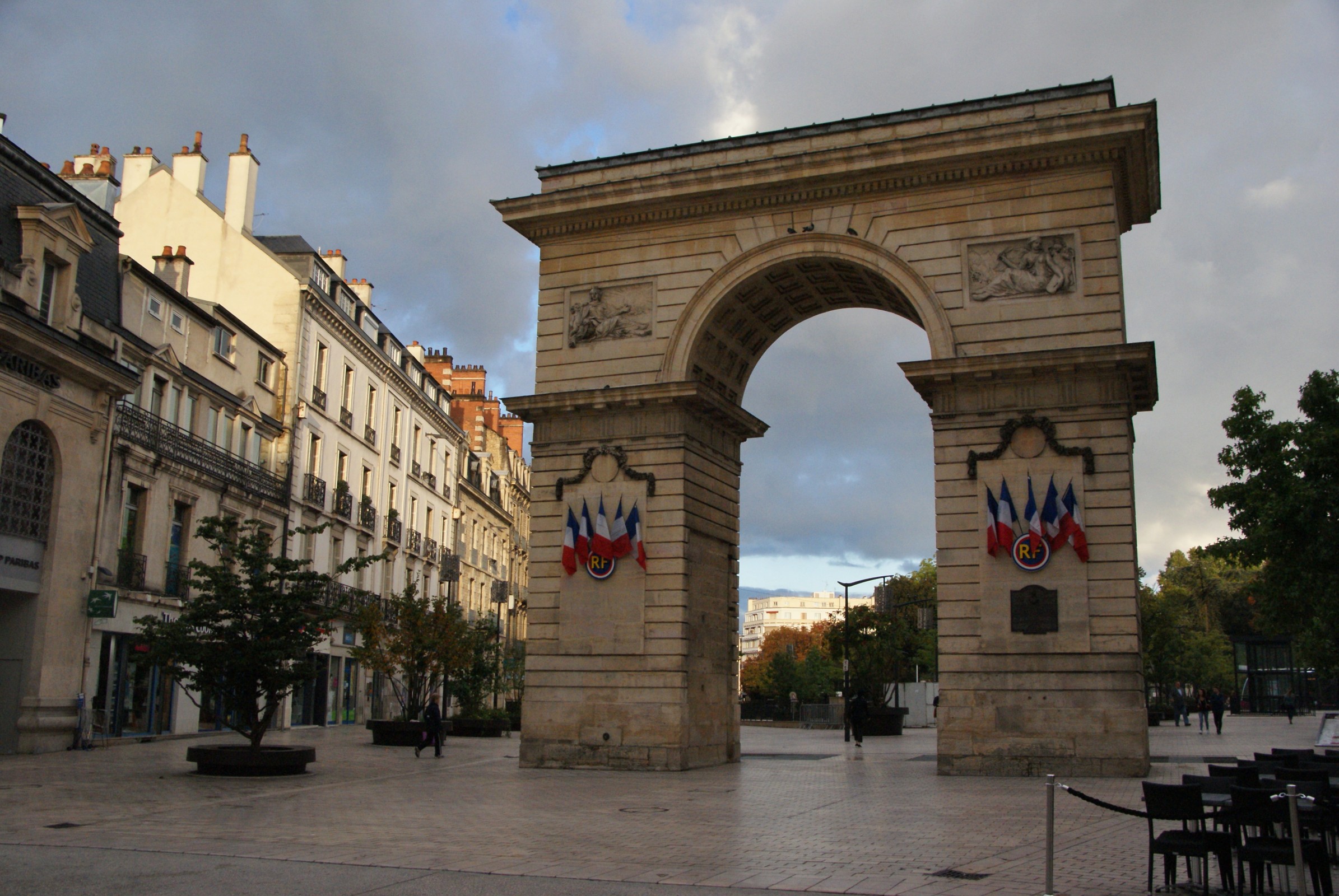 Vítězný oblouk patří ve Francii všeobecně mezi památky oblíbené a poměrně hojně se vyskytující. Nelze se proto divit, že jeden z nich najdeme rovněž v hlavním městě Burgundska. Tady je nazýván Porte Guillaume, a to zřejmě proto, že byl postaven na místě – a na základech - někdejší staré městské brány, pocházející z 12. století. Tato neoklasicistní stavba vznikla v roce 1788 a mezi francouzské památky se zařadila přesně o 150 let později (Jára da Cimrman by měl jistě radost, ale doporučil by raději vše o 2 roky posunout), tedy roku 1938. Autorem podoby oblouku je architekt Jean-Philippe Maret.