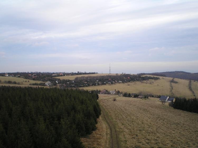 Z Vlčí hory: severovýchodním směrem ke Kahleberg, Pramenáči a větrným elektrárnám nad Novým Městem